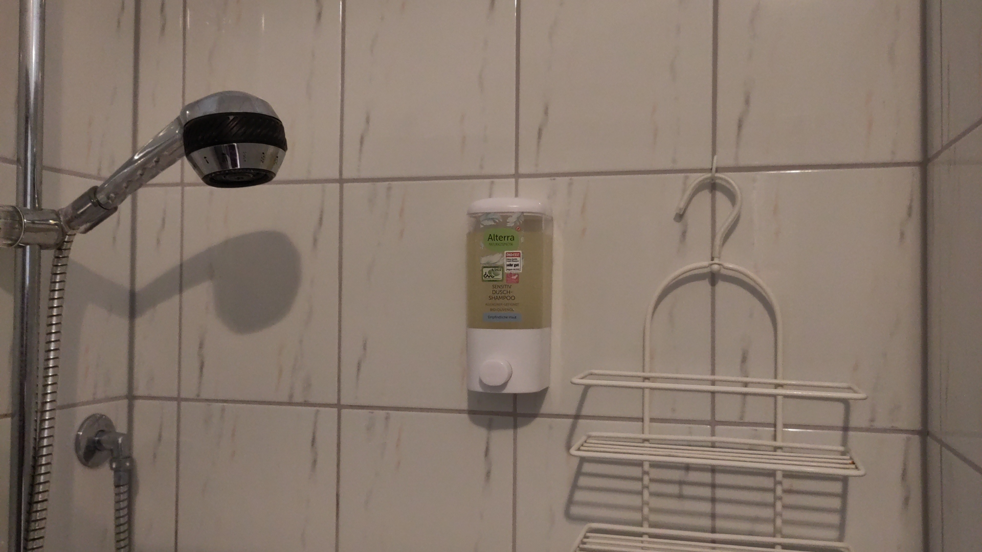 In der Ecke des Badezimmers steht noch ein Wäsche-Trockner und ein Wäscheständer (ein Bügelbrett findet sich in der Küche neben dem Kühlschrank; ein Bügeleisen ist im Staubsaugerschrank im Flur) sowie ein Hocker. Und irgendwo ist im Bad auch eine Waage versteckt - für diejenigen, die auch im Urlaub ihr Gewicht im Blick behalten möchten. Eine Wickelauflage, die auf den Trockner passt, finden Sie im Kleiderschrank des Schlafzimmers mit Kreuzbergblick.
