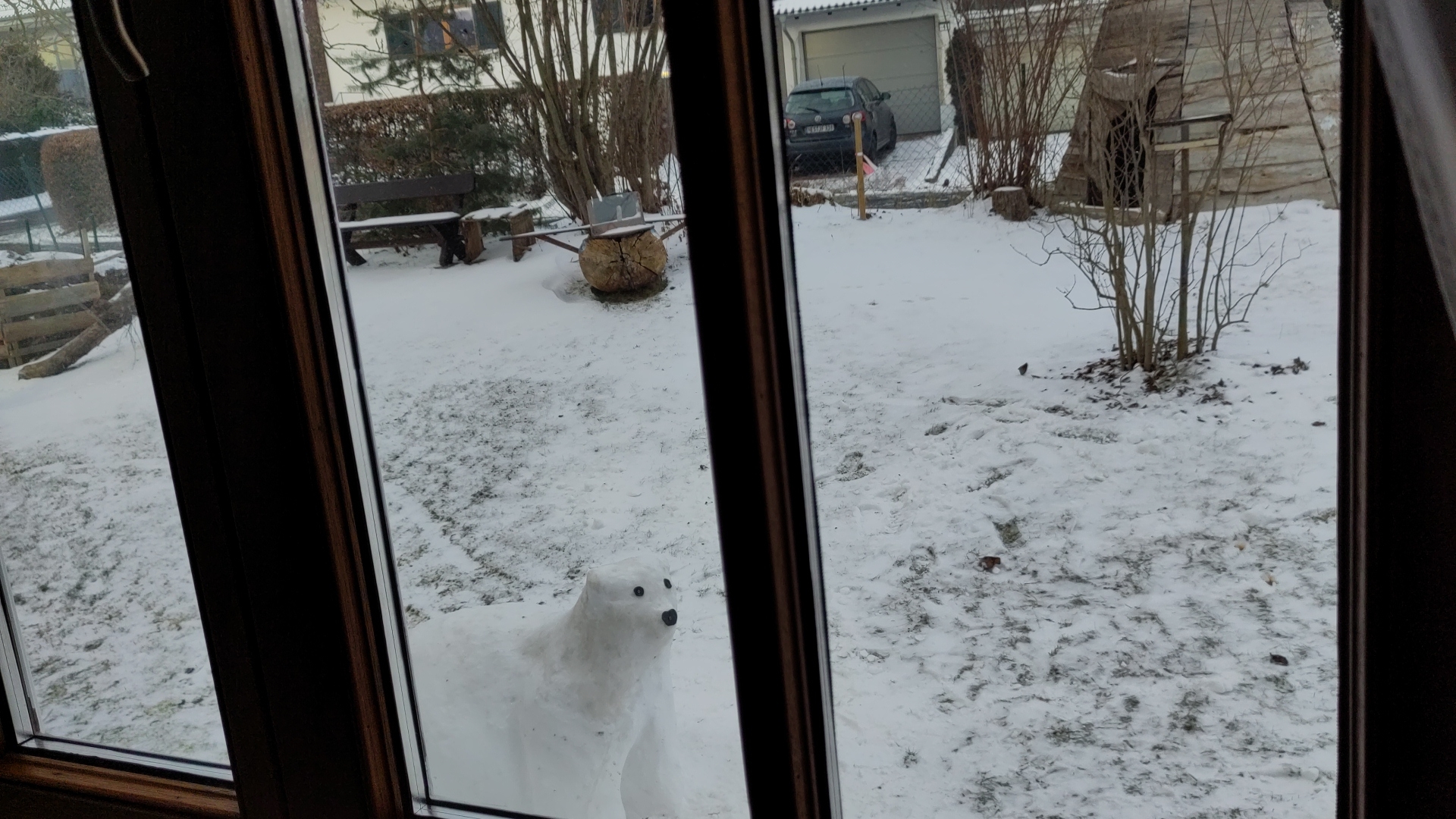 Das Jugendzimmer hat eine Größe von 10 m2 und verfügt über ein zweiflügeliges Fenster Richtung Norden mit Blick auf den Tipi, den Apfelbaum, den Fliederbusch und auf die Grünanlage hinter dem Haus. Das Fenster ist mit einem Verdunkelungs-Rollo ausgestattet.