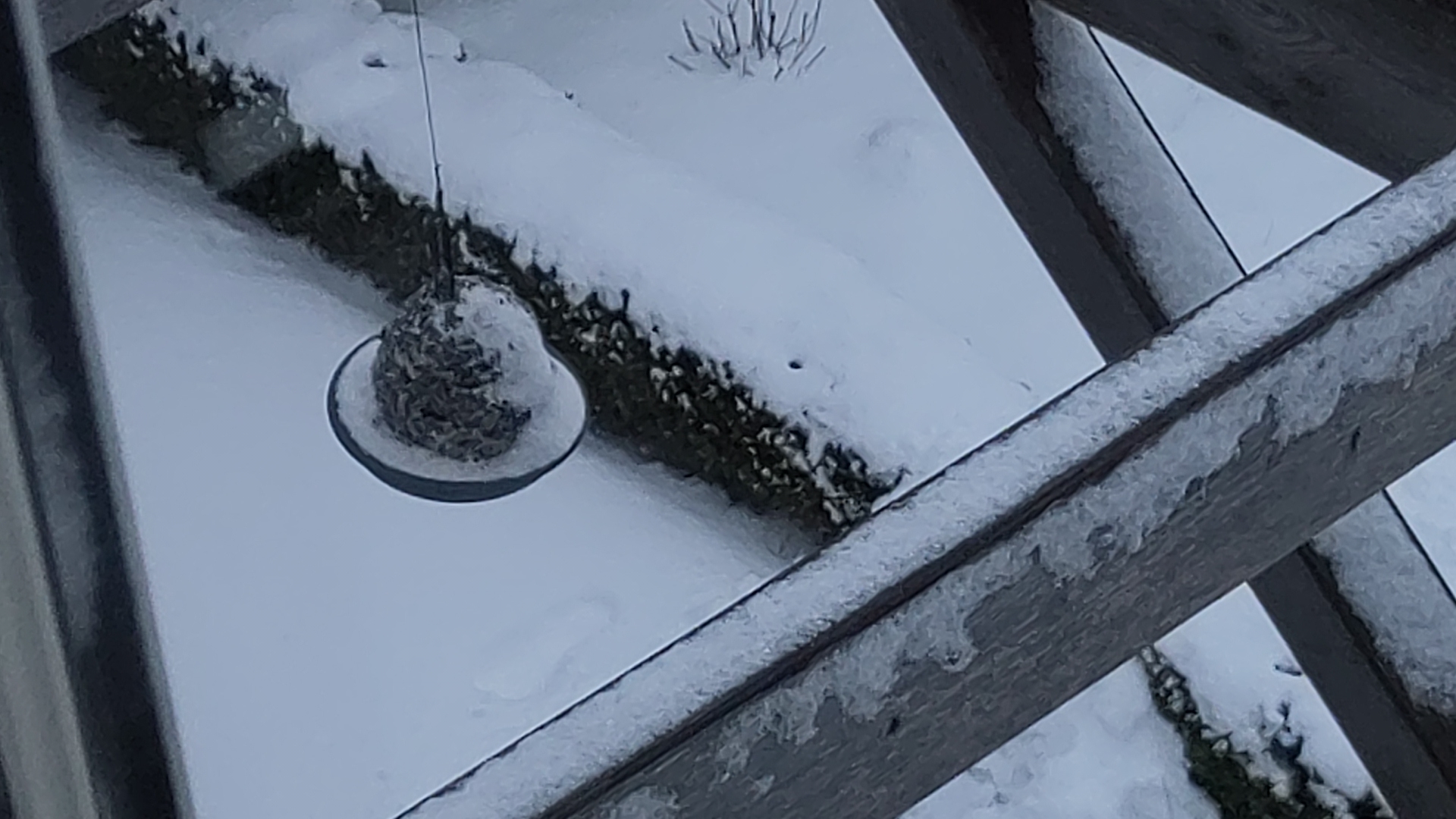 Anfang Januar 2024 gab es wieder richtig niedrige Temperaturen (bis unter -10° C). Dann kam auch der Schnee und die ganze Umgebung wurde winterlich weiß. Die Eichhörnchen entdeckten das Futterhäuschen und plünderten die Nüsse. Aber die weiße Pracht hielt leider wieder nicht lange: Mitte Januar gab es heftige Stürme, Tautemperaturen, Regen, aber Ende Januar wurde es wieder kälter. Wenigstens konnten wir die frostfreie Zeit nutzen, einen Teil des restlichen Gemüses im Garten zu ernten. Es ist schon erstaunlich, wie viel man Mitte Januar noch ernten kann - und dabei warten immer noch fünf Kohlsorten, verschiedene Kräuter und der Lauch auf die Ernte.