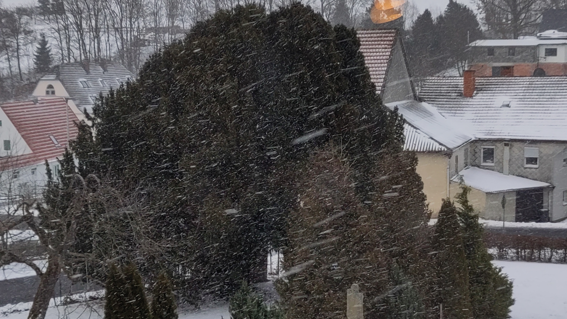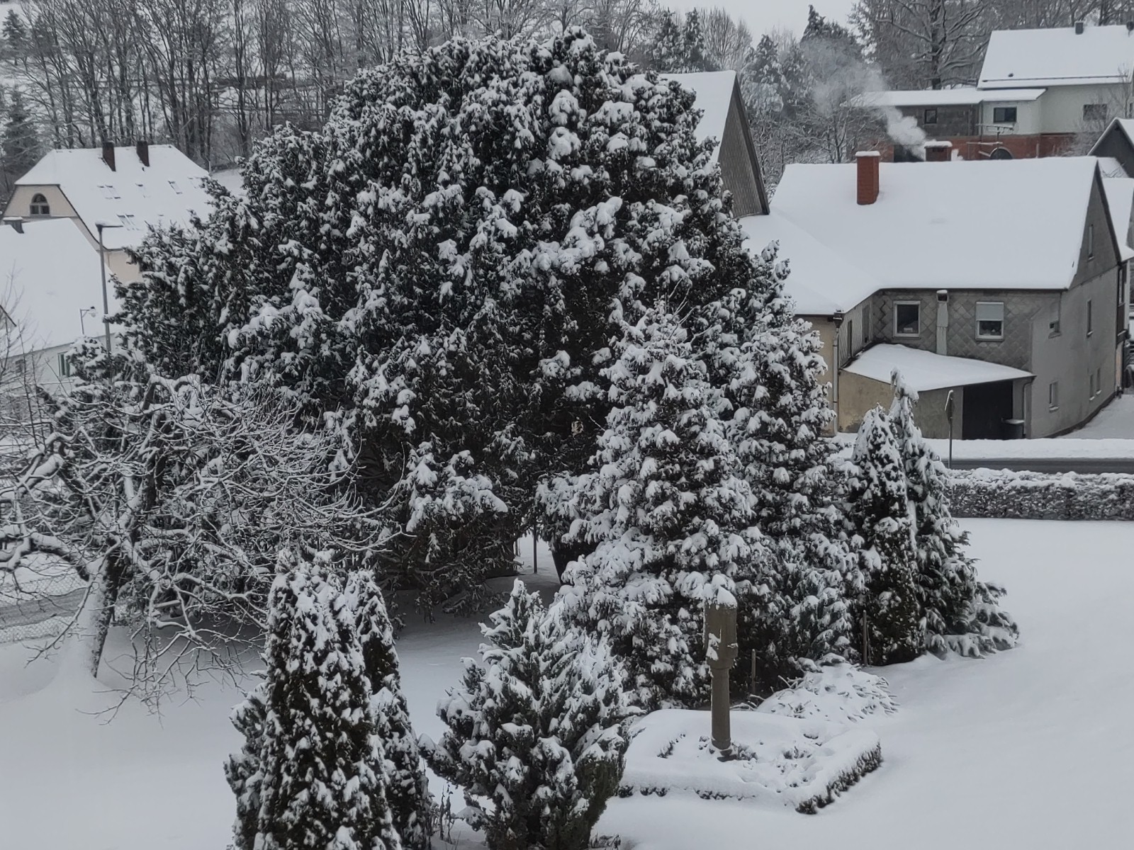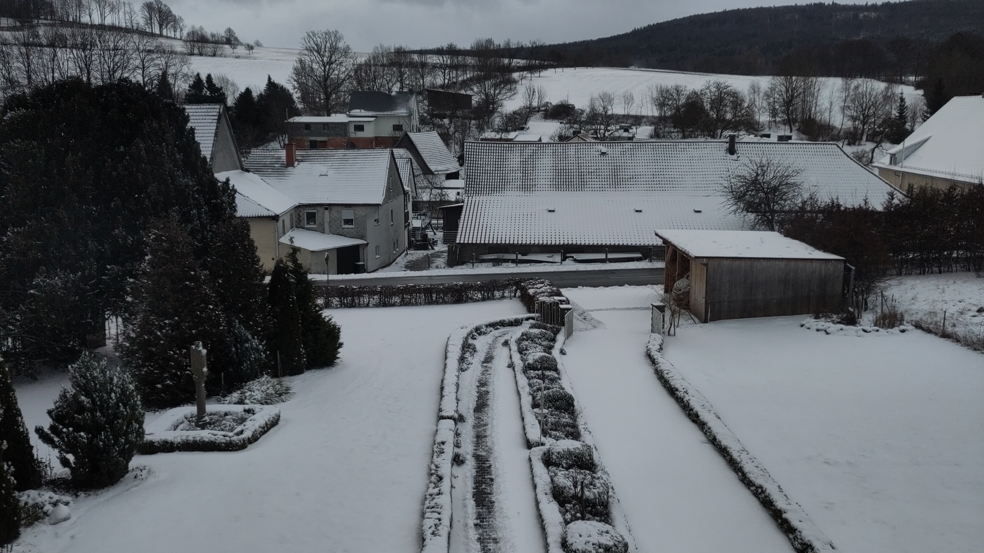 Gleich Anfang Dezember 2022 gab es schon etwas Schnee, aber dann wechselten sich Winter- und Herbstwetter erst ein paar mal ab. Mitte Dezember wurde es dann richtig kalt und die Temperaturen fielen deutlich unter 0° C; sie erreichten sogar -12° C. Die Umgebung war weiß gepudert und auf dem Kreuzberg und der Hochrhön lag schon richtig ordentlich Schnee. Aber das war leider auch nicht von Dauer: Vor Weihnachten taute die weiße Pracht wieder ab und es gab viel stürmisches Regenwetter. Damit bewahrheitete sich eine der rhöner Bauernregeln: "Wenn die Martinsgans im Schnee geht" (d.h. wenn es Mitte November einen Kälteeinbruch gibt), "dann geht das Christkind im Matsch" (d.h. dann ist zur Weihnachtszeit zu warm für Schnee).