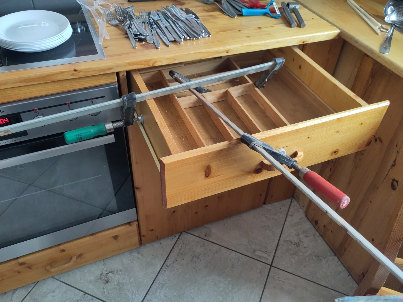 Im November 2025 standen einige Außenarbeiten an: Der abgestorbene Kastanienbaum neben dem Haus wurde noch einmal zurückgesetzt; aus dem oberen Teil des Stammes wollen wir einen Zaunkönig schnitzen. Da die Nächte immer länger und (gefühlt) auch immer dunkler wurden, zeigte es sich, dass der Weg vom Carport zum Haus doch nur recht dürftig beleuchtet war. Also installierten wir dort ein paar Solarlampen mit Bewegungsmeldern. In der Küche der Ferienwohnung wurden Reginas Sommerbilder durch ihre Herbstbilder ersetzt und in der Dusche wurde ein Shampoo-Spender montiert. Im Garten war recht wenig zu tun. Der inzwischen getrocknete Szechuanpfeffer wurde abgerebelt, um unsere Küchenvorräte (und auch die der Ferienwohnung) aufzustocken. Im Keller setzten wir Sauerkraut und Apfelessig für nächstes Jahr an. Beim Walnussbaum fanden sich immer wieder noch mal ein paar Nachzügler-Nüsse. Die Mispeln warteten noch darauf, ihre volle Reife zu erhalten (dazu brauchten sie erst noch ein paar Frostnächte). Oca und Yacon erhielten durch eine Abdeckung noch eine Gnadenfrist, um Knollen zu erzeugen. Kurz nach der Ernte der Yacon-Knollen trat Ende November mit unerwarteter Heftigkeit Frost mit Temperaturen bis -11° C auf, sodass wir schon befürchteten, unsere Oca-Knollen seien im Boden erfroren, was aber glücklicherweise nicht der Fall war, sodass wir nach einer erfolgreichen Ernte unser Oca-Experiment auch kulinarisch fortsetzen konnten. Auf dem Nachbargrundstück wurde oben an der Frühlingsstraße mit dem Bau eines Hauses begonnen; unsere Aussicht war davon aber nicht betroffen und auch sonst störten uns die Bauarbeiten nicht.